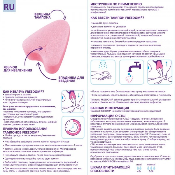 Для введения необходимо сжать вместе ножки на основании и ввести как обычный тампон