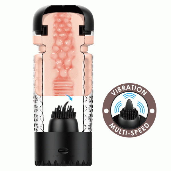 Колба мастурбатора выполнена из ABS-пластика и закрыта плотно крышкой. При вскрытии, открывается потрясающая картина супер реалистичная вагина! Далее, пройдя сквозь вагину, половой член, а именно головка, касается нежнейшей россыпи силиконовых шипов в центре которых силиконовый язычок! Язычок и шипы с вибрацией!